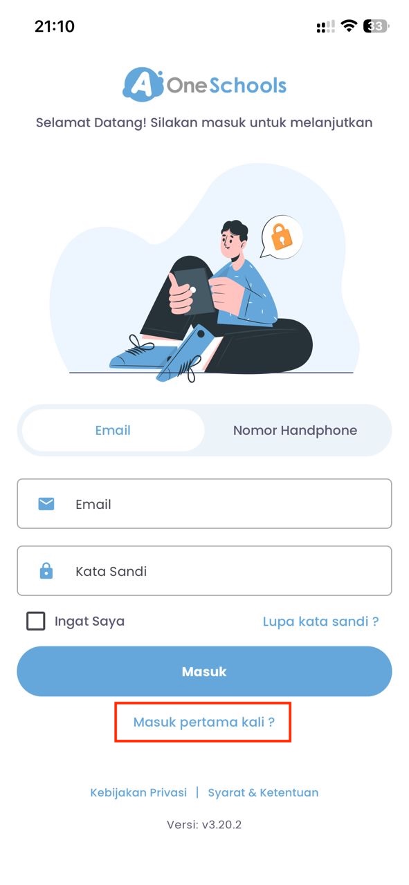 Jika Anda mendaftar sebagai peran Guru atau Wali Murid. Berikut ini adalah panduan untuk melakukan Masuk Pertama Kali melalui Aplikasi AOneSchools: