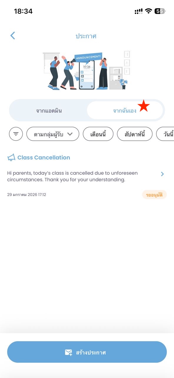 หลังจากส่งประกาศแล้ว ประกาศจะต้องได้รับการอนุมัติจาก Superadmin หรือ Admin ก่อน